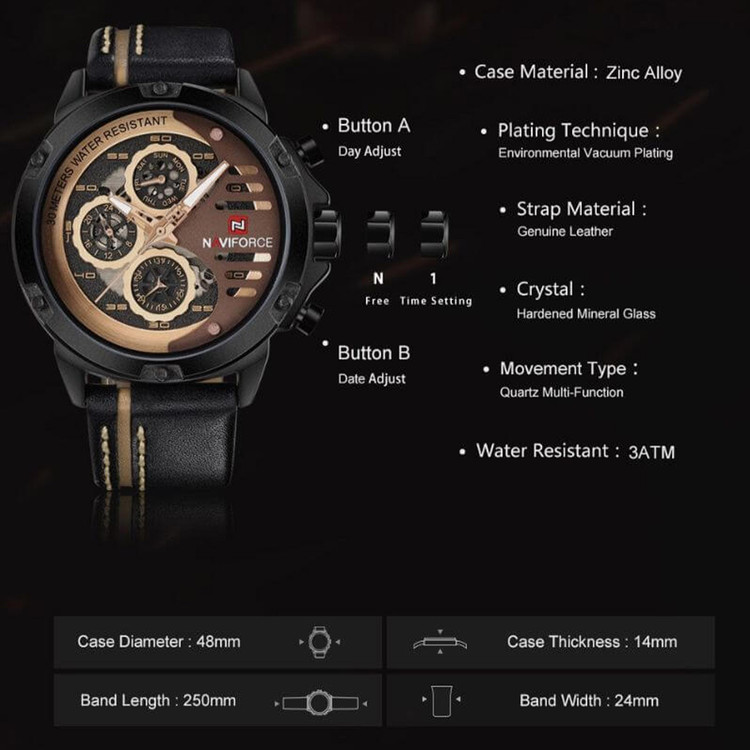 ساعت مچی عقربه‌ای مردانه کوارتز نیوی فورس مدل nf9110