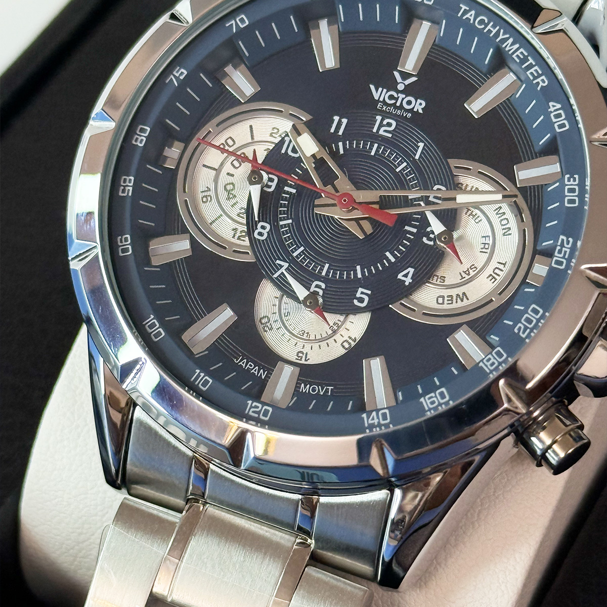 ضدآب تا عمق 3ATM ,عقربه شب نما ,تاریخ نما ,کرنوگراف , نمایشگر 24 ساعت
