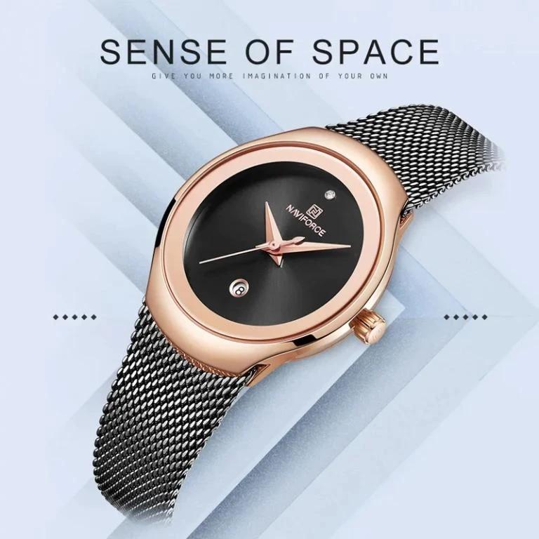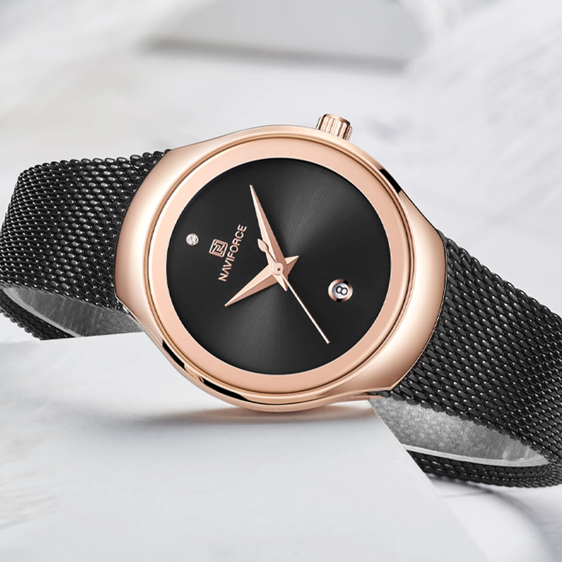 اگر به دنبال یک ساعت مچی زنانه اورجینال با موتور ژاپنی دقیق، رنگ رزگلد لوکس و طراحی ظریف هستید، ساعت نیوی فورس مدل NF5004 انتخابی هوشمندانه است. این ساعت با مواد مرغوب ضدحساسیت، وزن سبک، کیفیت ساخت بالا و گارانتی معتبر، همراهی زیبا و بادوام برای هر روز شما یا هدیهای ارزشمند برای بانوان خواهد بود.