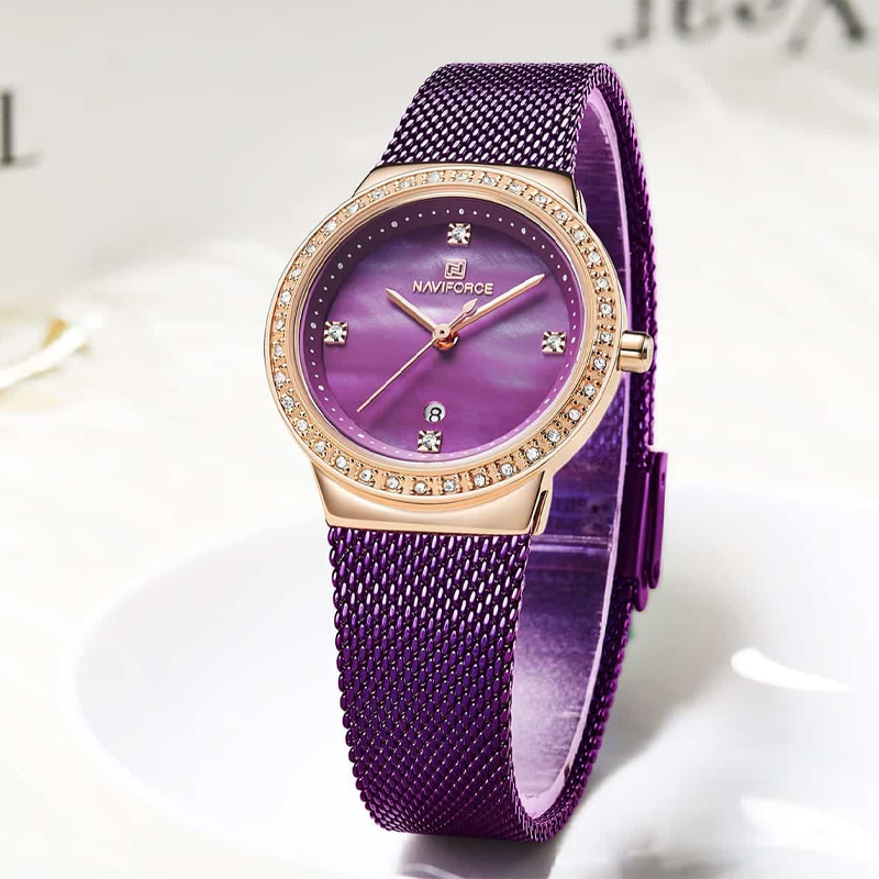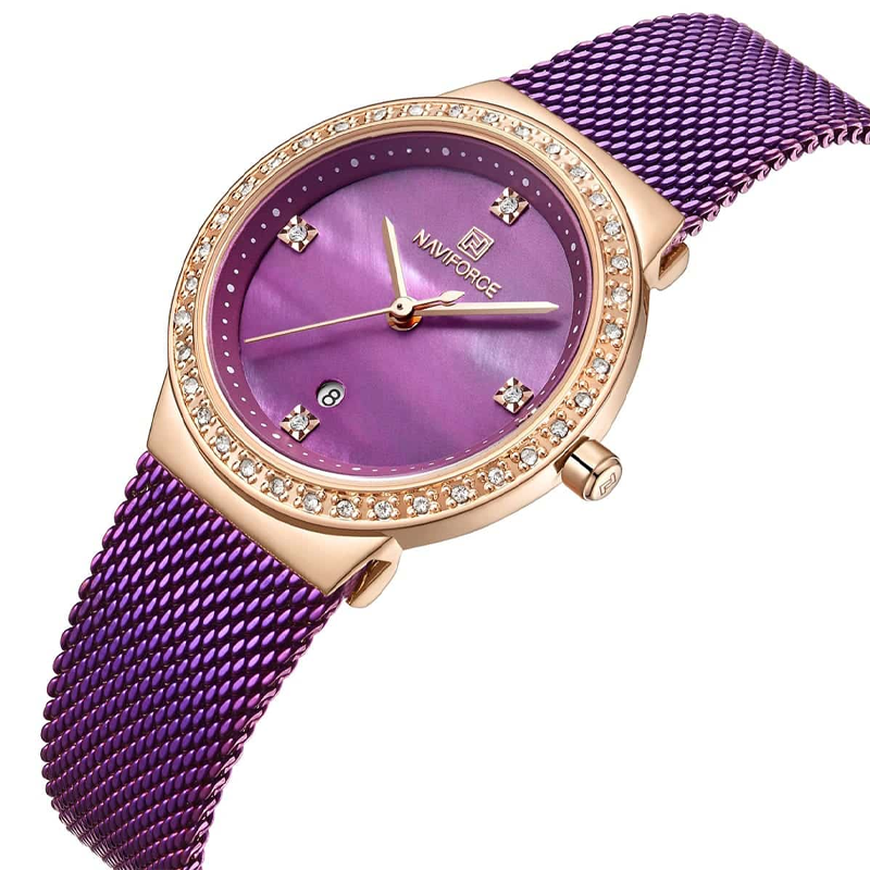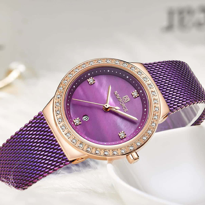 ساعت مچی زنانه Naviforce NF5005 یکی از مدلهای محبوب و پرفروش این برند است که با طراحی ساده، ظریف و شیک، مخصوص خانمهای سادهپسند و با سلیقه طراحی شده. این ساعت با قاب، بند و قفل تمام استیل، ظاهری بسیار جذاب و درخشان دارد و موتور کوارتز ژاپنی دقیق آن، کیفیت و دوام بالایی را تضمین میکند. شیشه ضدخش مقاوم در برابر ضربه و خط، همراه با قطر کوچک ۳۲ میلیمتری صفحه، این مدل را به یک ساعت زنانه ظریف و مجلسی تبدیل کرده است.