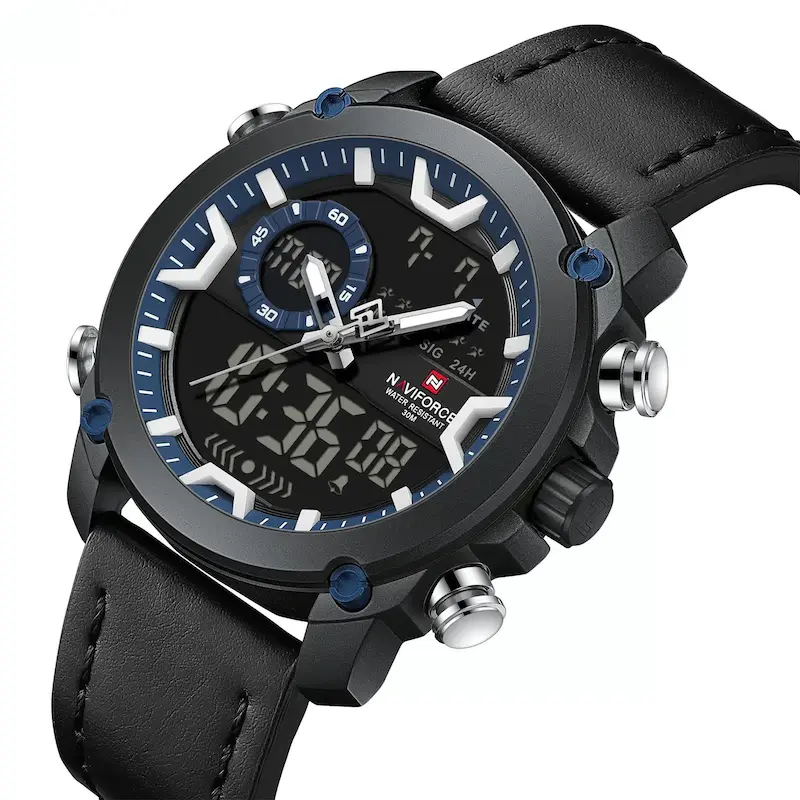 ساعت مچی مردانه Naviforce NF7104 یکی از مدلهای اسپرت و کاربردی این برند محبوب است که با طراحی مردانه، صفحه ترکیبی و کیفیت ساخت قابلاعتماد، انتخابی مناسب برای استفاده روزمره محسوب میشود. این مدل از موتور دو زمانه (آنالوگ و دیجیتال) با منبع تغذیه باتری بهره میبرد و با ظاهر قدرتمند استایلی شیک و اسپرت را همزمان ارائه میدهد.