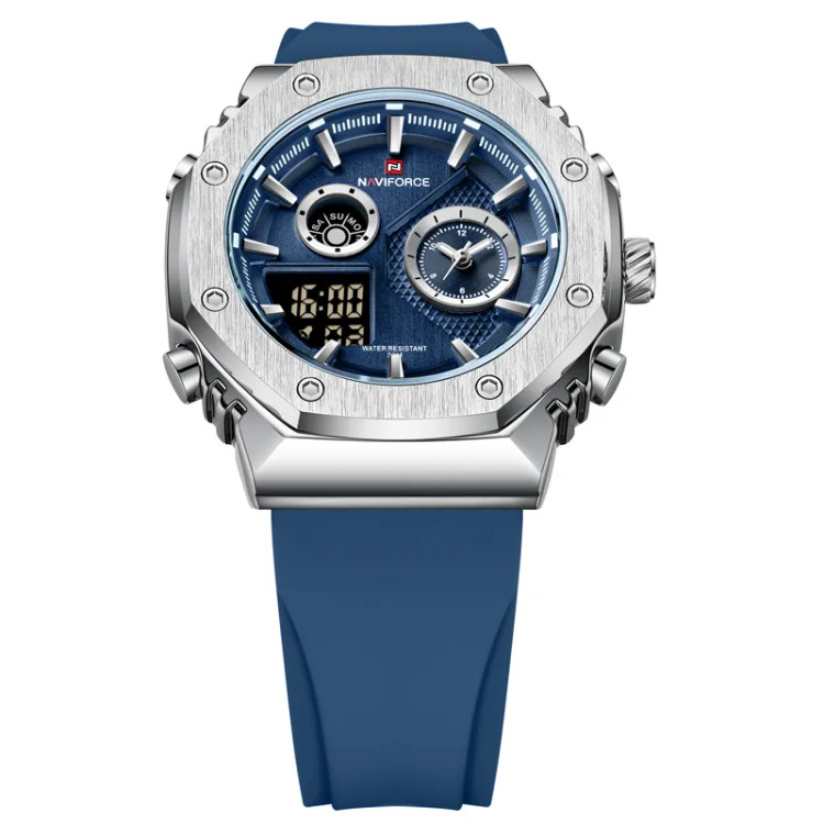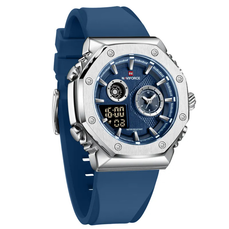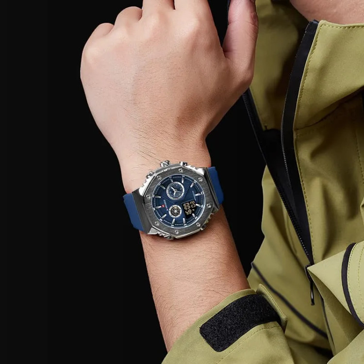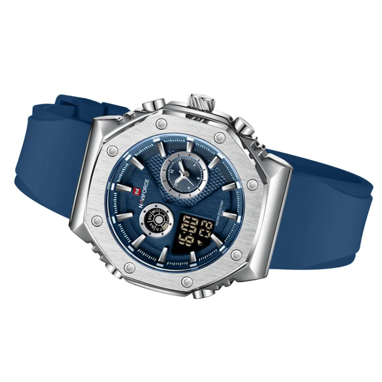 ساعت مچی مردانه NAVIFORCE NF9216 یکی از مدلهای اسپرت و پرطرفدار برند نیوی فورس است که با طراحی خاص، رنگبندی جذاب و امکانات کاربردی، انتخابی ایدهآل برای استفاده روزمره آقایان و بانوان محسوب میشود. این مدل به موتور دو زمانه دیجیتال–عقربهای مجهز بوده و با بهرهگیری از موتور کوارتز ژاپنی، دقت و دوام بالایی را ارائه میدهد.