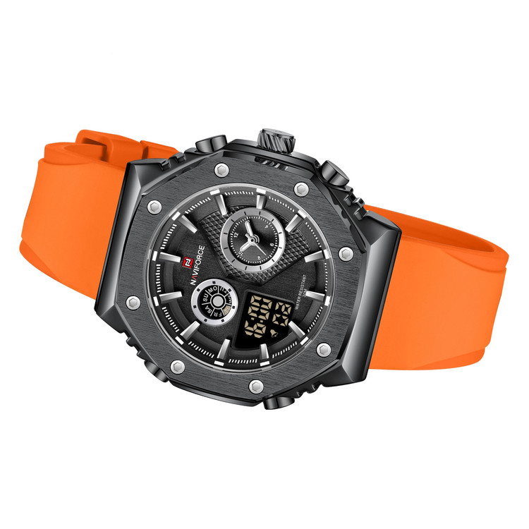 بدنه مقاوم، بند سیلیکونی ضد حساسیت و شیشه معدنی ضد خش، این ساعت را به گزینهای مناسب برای استایلهای روزمره و اسپرت تبدیل کرده است. نمایش همزمان زمان، تاریخ و امکانات جانبی، NF9216 را به ساعتی کاربردی و مقرونبهصرفه بدل میکند.