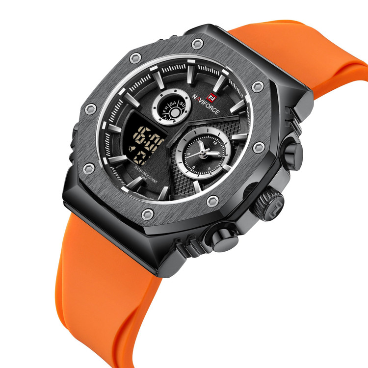 ساعت مچی مردانه NAVIFORCE NF9216 یکی از مدلهای اسپرت و پرطرفدار برند نیوی فورس است که با طراحی خاص، رنگبندی جذاب و امکانات کاربردی، انتخابی ایدهآل برای استفاده روزمره آقایان و بانوان محسوب میشود. این مدل به موتور دو زمانه دیجیتال–عقربهای مجهز بوده و با بهرهگیری از موتور کوارتز ژاپنی، دقت و دوام بالایی را ارائه میدهد.