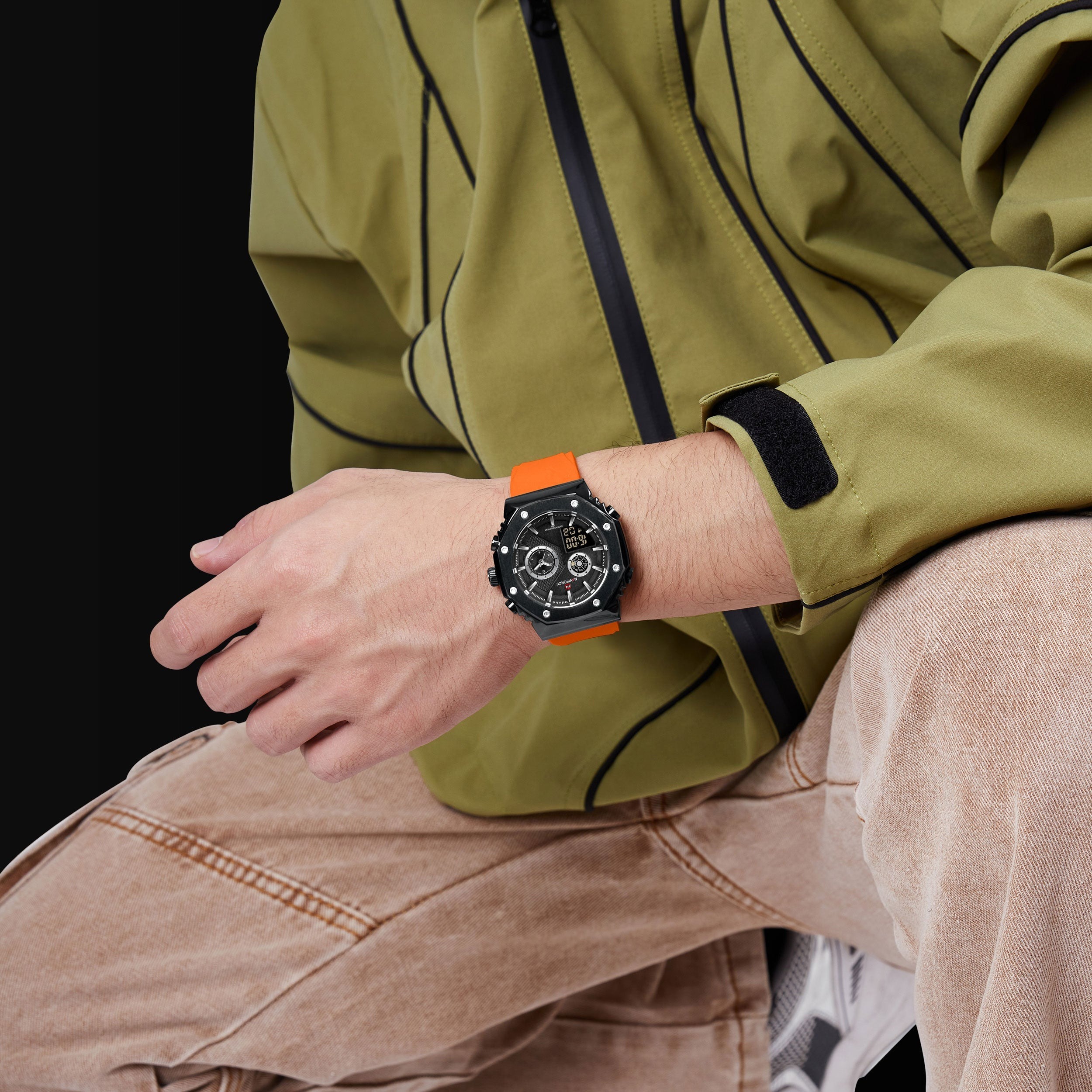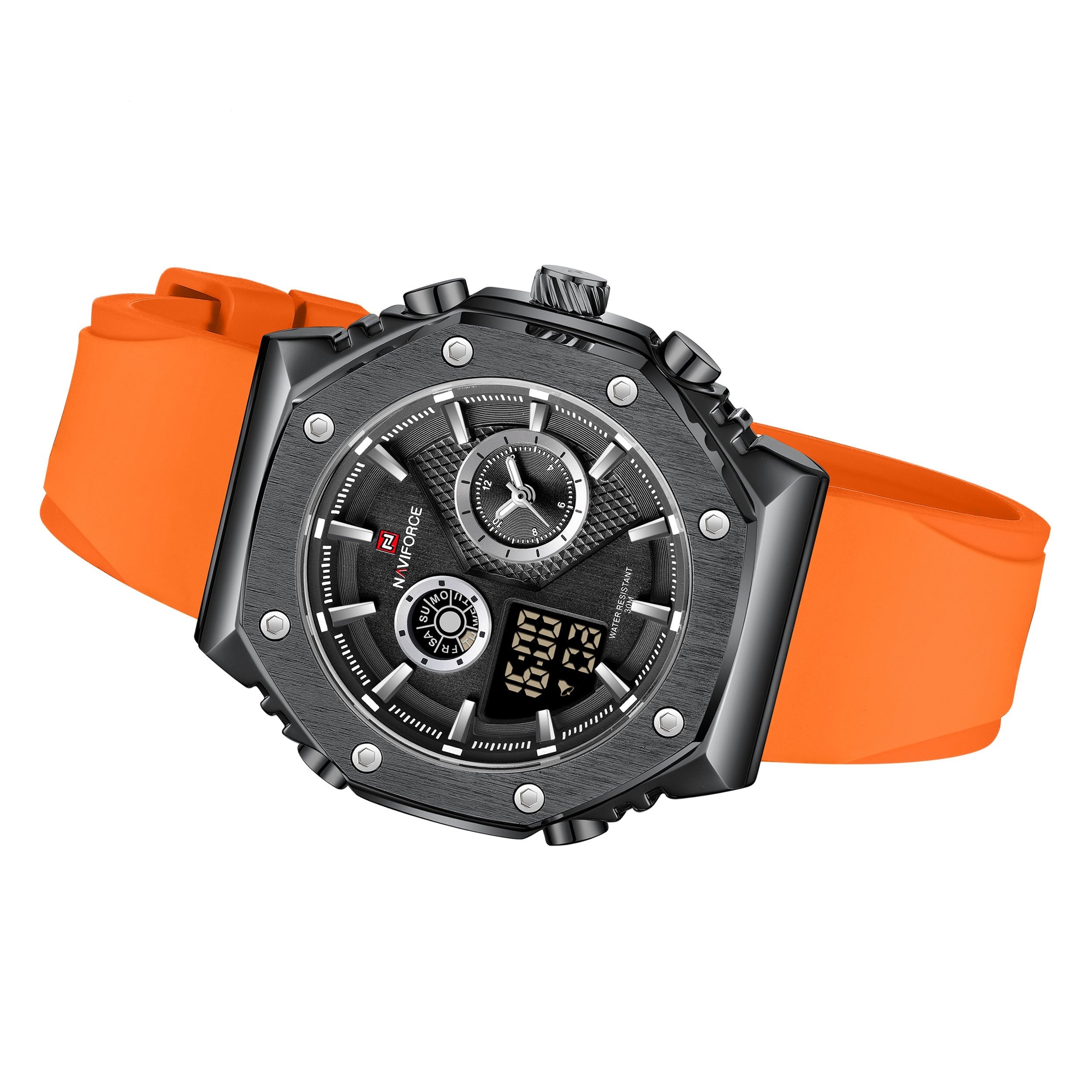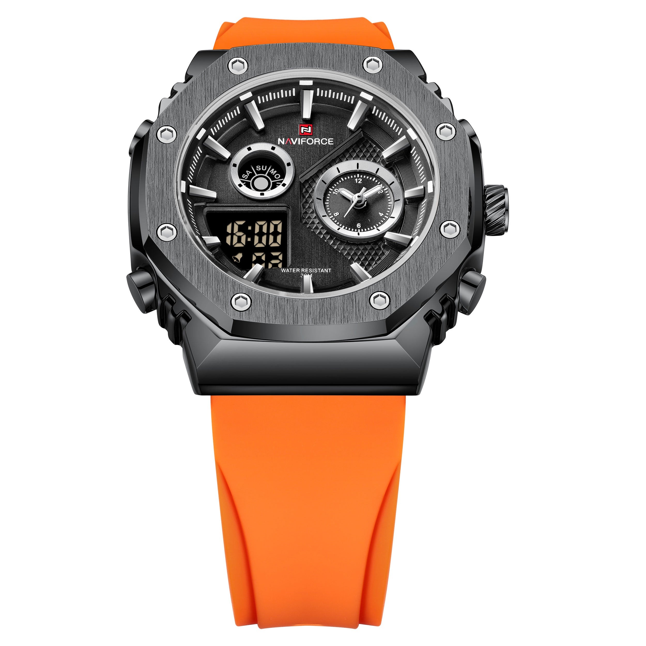ساعت مچی مردانه NAVIFORCE NF9216 یکی از مدلهای اسپرت و پرطرفدار برند نیوی فورس است که با طراحی خاص، رنگبندی جذاب و امکانات کاربردی، انتخابی ایدهآل برای استفاده روزمره آقایان و بانوان محسوب میشود. این مدل به موتور دو زمانه دیجیتال–عقربهای مجهز بوده و با بهرهگیری از موتور کوارتز ژاپنی، دقت و دوام بالایی را ارائه میدهد.