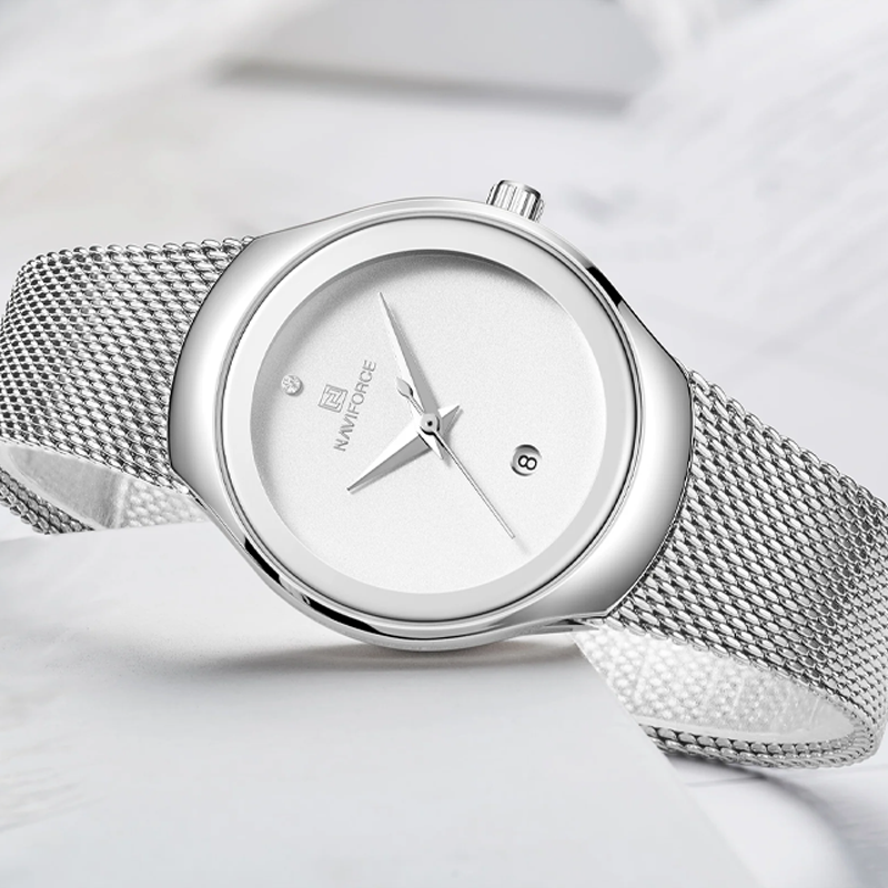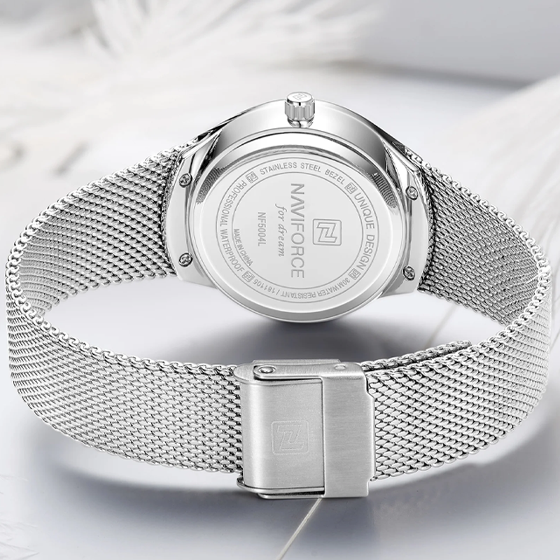 ساعت مچی زنانه Naviforce NF5004 یکی از مدلهای زیبا، ظریف و لوکس این برند محبوب است، طراحی مینیمال، گزینهای عالی برای بانوان شیکپوش به شمار میرود. این ساعت آنالوگ با موتور کوارتز دقیق ساخت ژاپن، ظاهری زنانه و مجلسی ارائه میدهد و برای استفاده روزمره یا موقعیتهای خاص بسیار مناسب است.