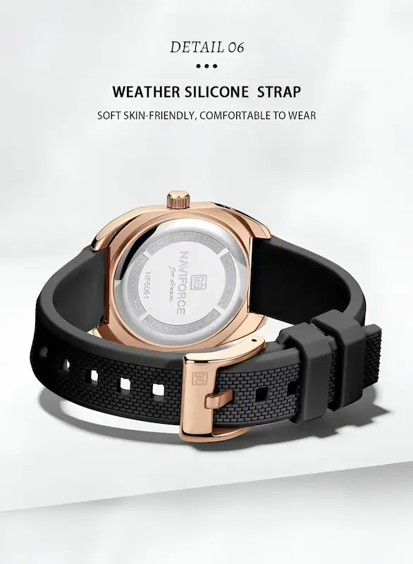 این مدل انتخابی عالی برای استایل رسمی، روزمره، کژوال و دخترانه است. ساعت نیوی فورس NF5061 بهخوبی با مانتوهای شیک، لباسهای اداری، تیشرت و شلوار جین، لباسهای مهمانی یا استایلهای دانشجویی هماهنگ میشود و برای بانوان و دخترانی که سبک و مدرن میخواهند، گزینهای ایدهآل به شمار میرود.