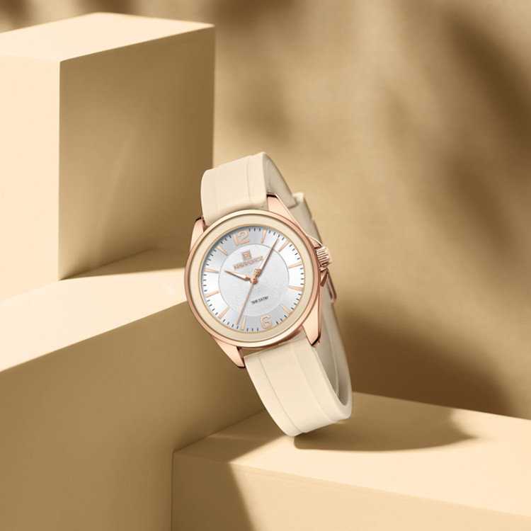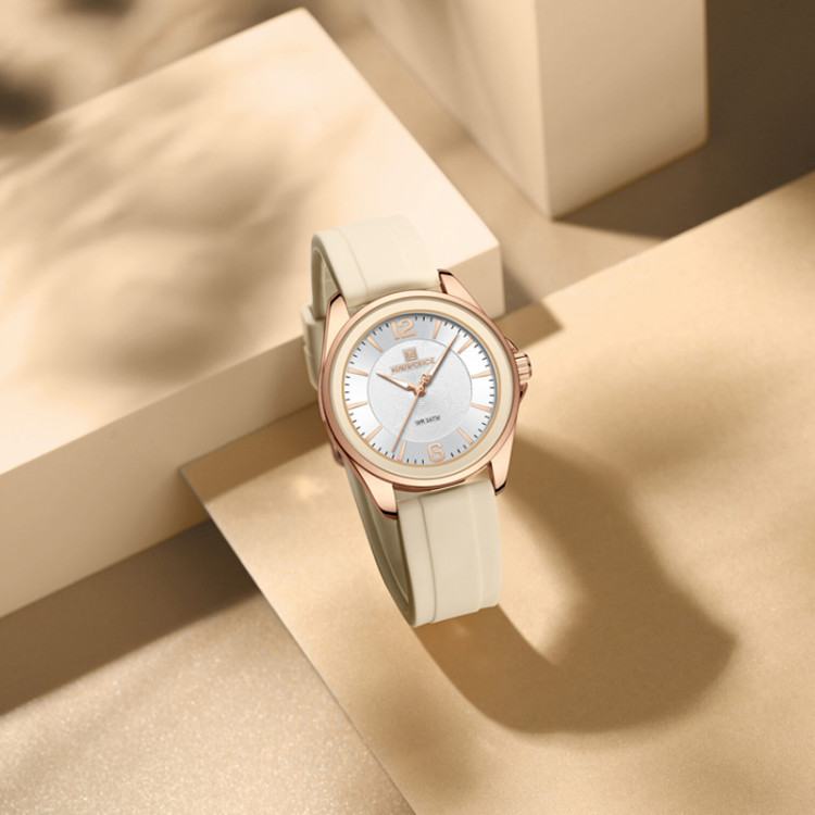 ساعت مچی زنانه Naviforce NF5068 یکی از مدلهای زیبا و اسپرت این برند محبوب است که با طراحی جوانپسند، صفحه گرد جذاب و کیفیت ساخت بالا، گزینهای عالی برای بانوان فعال و شیکپوش به شمار میرود. این ساعت آنالوگ با موتور کوارتز دقیق ساخت ژاپن، ظاهری مینیمال و رنگبندی متنوع ارائه میدهد و برای استفاده روزمره و فعالیتهای ورزشی بسیار مناسب است.