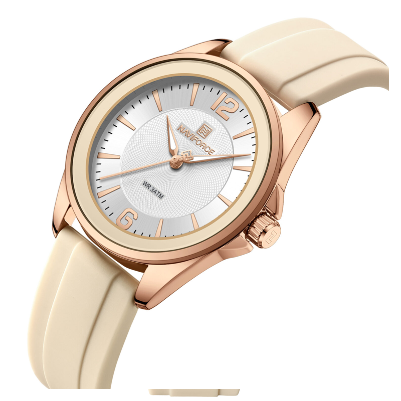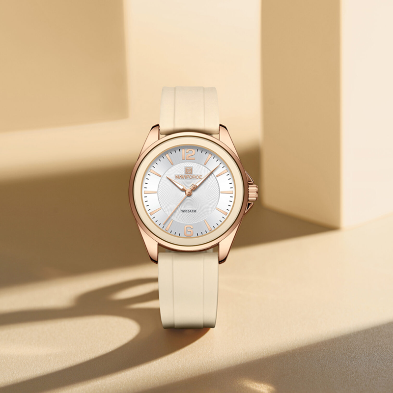 ساعت مچی زنانه Naviforce NF5068 یکی از مدلهای زیبا و اسپرت این برند محبوب است که با طراحی جوانپسند، صفحه گرد جذاب و کیفیت ساخت بالا، گزینهای عالی برای بانوان فعال و شیکپوش به شمار میرود. این ساعت آنالوگ با موتور کوارتز دقیق ساخت ژاپن، ظاهری مینیمال و رنگبندی متنوع ارائه میدهد و برای استفاده روزمره و فعالیتهای ورزشی بسیار مناسب است.