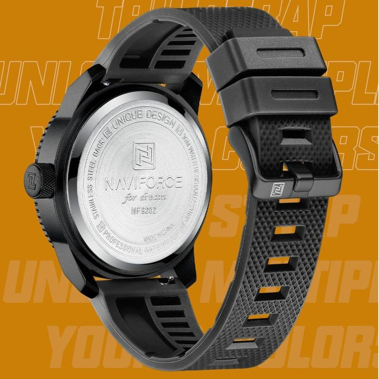 ساعت مچی Naviforce NF9202T یک مدل اسپرت، پرانرژی و جوانپسند است که بهطور خاص برای دانشجویان و افراد فعال طراحی شده. این ساعت آنالوگ با موتور کوارتز دقیق ژاپنی، صفحه بزرگ رنگارنگ و عقربههای خوانا، ترکیبی عالی از عملکرد و مد را ارائه میدهد. بند سیلیکونی نرم در رنگهای متنوع (مشکی، آبی، قرمز) ظاهری جذاب و پرجنبوجوش ایجاد میکند و برای استایلهای روزمره و ورزشی ایدهآل است.