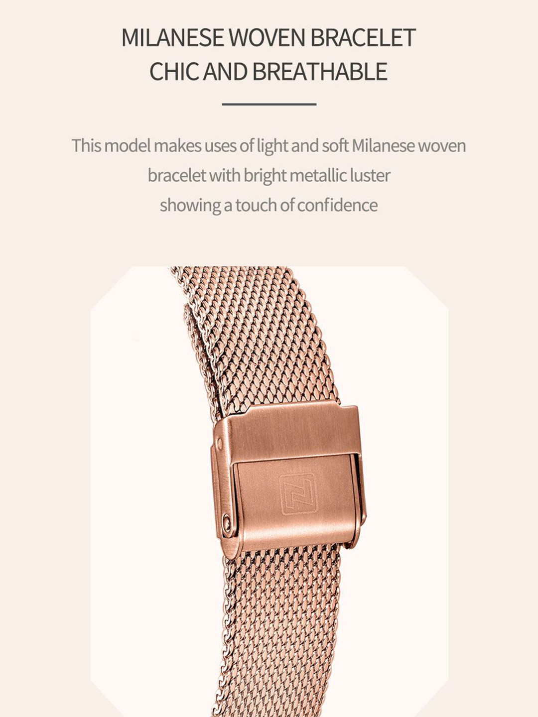 ترکیب بدنه و بند استیل رنگ ثابت ضدحساسیت با شیشه معدنی مقاوم، حس کیفیت بالا، دوام و راحتی را در کنار استایلی ظریف و درخشان به شما هدیه میکند.