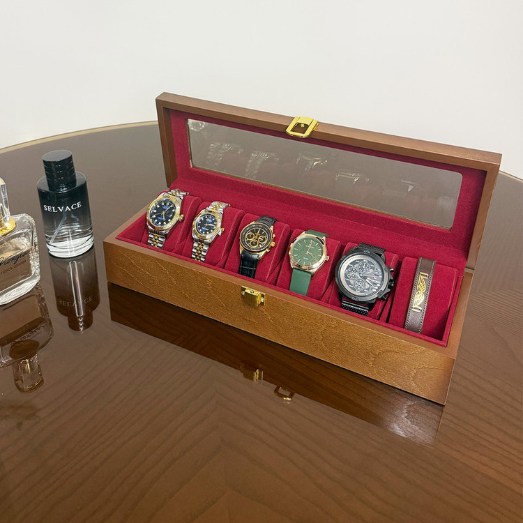 جعبه ساعت چوبی مدل W102 | با ظرفیت ۶ عدد ساعت