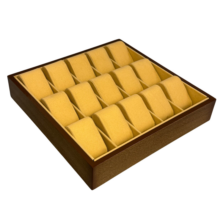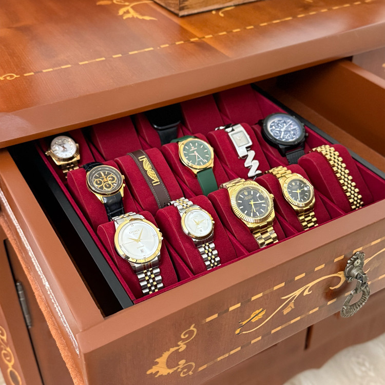 این جعبه با ظرفیت ۱۵ عدد ساعت، نظم خاصی به مجموعه ساعتهای شما میدهد و جلوهای زیبا به میز کار یا کمد شما میبخشد. متریال چوبی با پوشش نرم داخلی، از خط و خش روی ساعتها جلوگیری میکند.