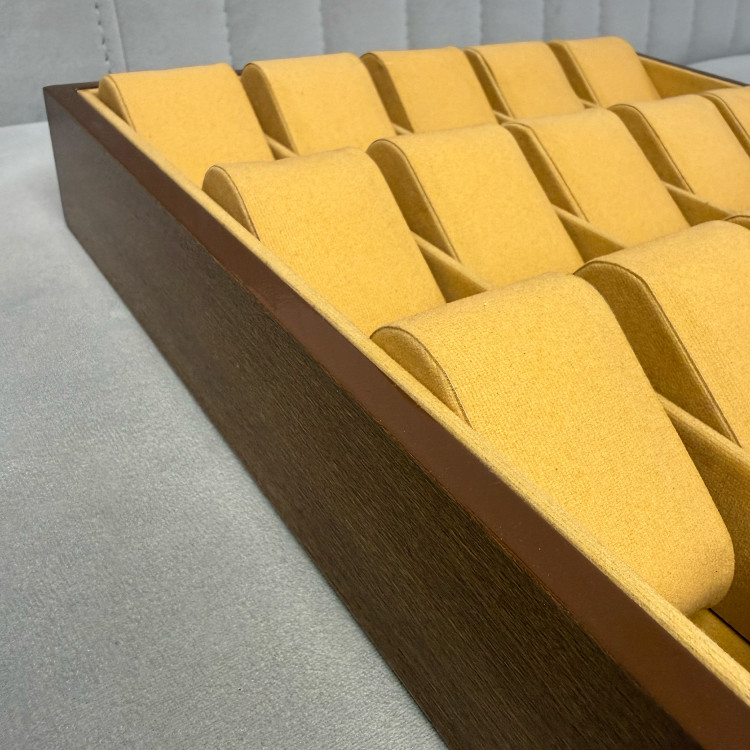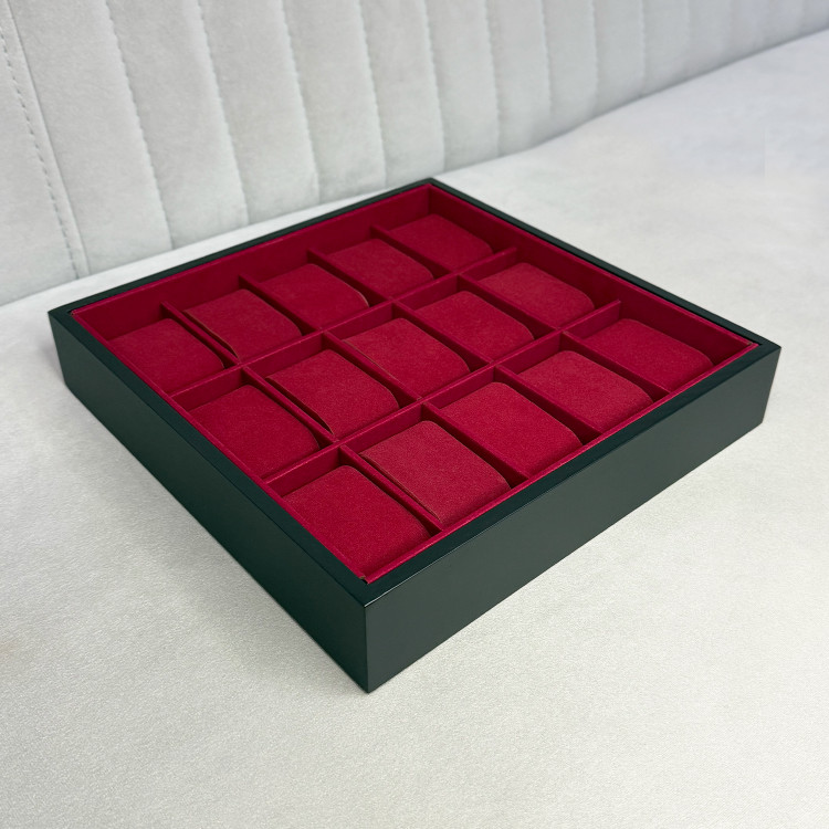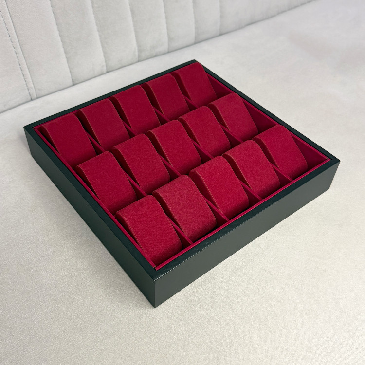 این جعبه با ظرفیت ۱۵ عدد ساعت، نظم خاصی به مجموعه ساعتهای شما میدهد و جلوهای زیبا به میز کار یا کمد شما میبخشد. متریال چوبی با پوشش نرم داخلی، از خط و خش روی ساعتها جلوگیری میکند.
